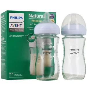 AVENT BIBERON VERRE 240Ml - Pack de 2 Optez pour le lot de 2 biberons en verre de 240 ml de la marque Philips Avent. Les biberons Natural response rendent la transition sein/biberon plus paisible pour votre bébé et pour vous. Les alvéoles exclusives de la tétine permettent à votre bébé de téter comme au sein. Ces 2 biberons en verre de 240 ml...