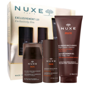 NUXE MEN COFFRET EXCLUSIVEMENT LUI Ce coffret contient: NUXE Men Gel Multi-fonctions Hydratant 50ml NUXE Men Gel Douche Multi-usages 200ml NUXE Men Déodorant Protection 24H 50ml NUXE Men Gel Multi-fonctions Hydratant 50ml Appliquez le matin et/ou le soir sur une peau propre. Peut s’appliquer après le rasage. Prélevez une bonne noisette de crème de jour, faites-la...
