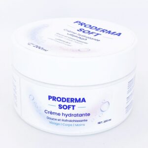 PRODERMA SOFT Crème Hydratante 200ML Proderma Soft Crème Hydratante – 200 ml est une crème polyvalente à la texture légère et veloutée, conçue pour hydrater et adoucir la peau du visage, du corps et des mains. Enrichie en agents émollients et rafraîchissants, elle procure une sensation immédiate de confort tout en laissant la peau souple et délicatement parfumée. Bienfaits et...