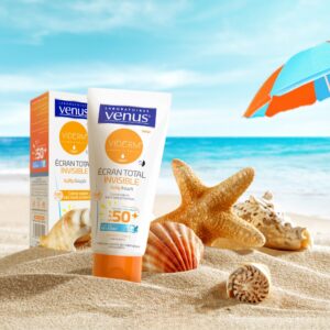 Venus VIDERM Écran Solaire Invisible SPF60+ 50ML Adaptée à tous types de peaux, la nouvelle crème solaire VIDERM Solaire SPF 50 des LABORATOIRES VENUS apporte une haute protection contre les UVA, les UVB, les radicaux libres et prévient du vieillissement cutané. Et ce, grâce à des ingrédients apaisants soigneusement sélectionnés pour votre peau. Sa texture fluide et non grasse, à l’extrait d’avoine et au...