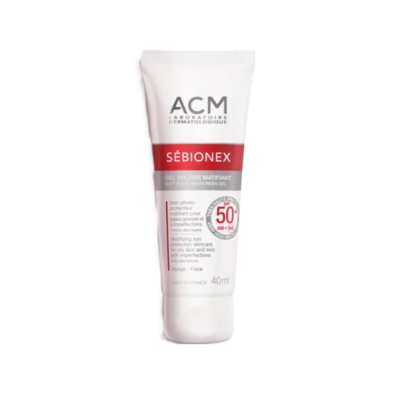 ACM SÉBIONEX Gel Solaire Matifiant SPF 50+ 40 ml est un gel qui s'adresse aux peaux mixtes à grasses, y compris sous traitements anti-acnéiques. Ce gel offre une très haute protection solaire optimale contre les UVB et les UVA grâce à son association de filtres organiques et de filtres solaires minéraux et procure un effet anti-brillance longue durée. Sa texture fluide et légère, adaptée aux peaux grasses, hydrate et matifie tout au long de la journée. Elle est invisible à l'application, non comédogène et résistante à l'eau.