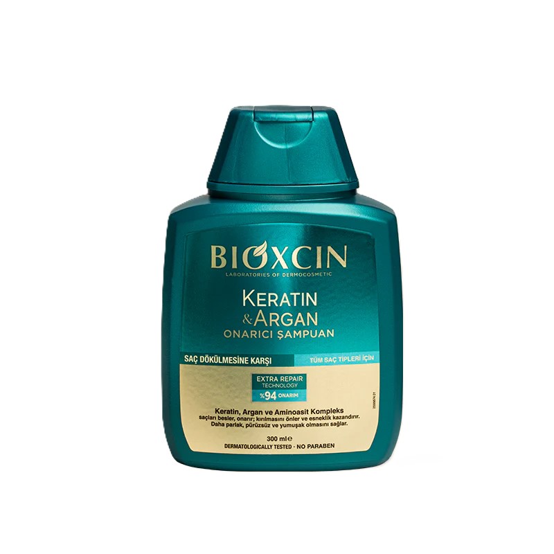 • Le shampooing réparateur Bioxcin Keratin et Argan 300 ml est destiné aux personnes ayant les cheveux abîmés, secs, cassants ou fragiles.