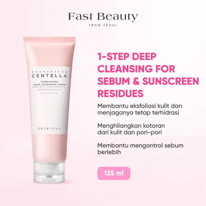 SKIN1004 Madagascar Centella Poremizing Deep Cleansing Foam 125ml est un nettoyant pour le visage qui nettoie en profondeur la saleté, les résidus de maquillage et la crème solaire de la peau, promettant un nettoyage en profondeur sans compromettre la santé de la peau. La formule de ce produit comprend du sel rose de l’Himalaya, un sel naturel qui contient plus de 80 minéraux différents. Ainsi, sa salinité crée une pression osmotique qui aide à extraire les impuretés de la surface de la peau et de l’intérieur des pores. De plus, le kaolin est une argile qui absorbe l’excès de sébum et de saleté, garantissant ainsi que les pores ne soient pas obstrués. Ensuite, l’action combinée de la papaïne et du vinaigre procure un effet exfoliant doux. Ces ingrédients agissent en tandem pour éliminer les cellules mortes de la peau, offrant un teint lisse, soyeux et renouvelé. De plus, l’extrait de Centella asiatica de Madagascar protège et apaise la peau, ce qui rend le produit sûr même pour les peaux sensibles.
