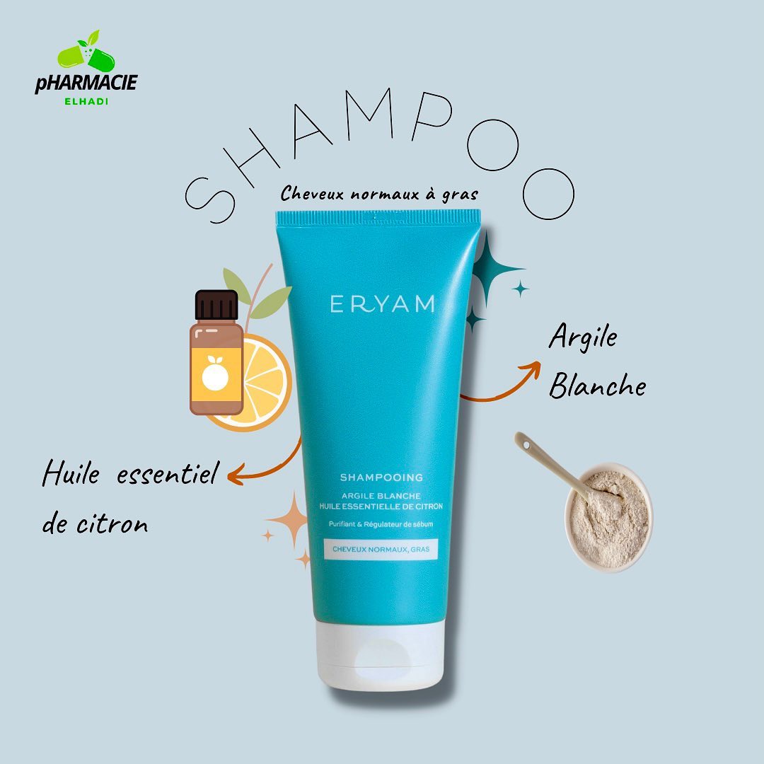 ERYAM Shampooing Sans Sulfates Argile Blanche & Huile Essentielle de Citron 200ML