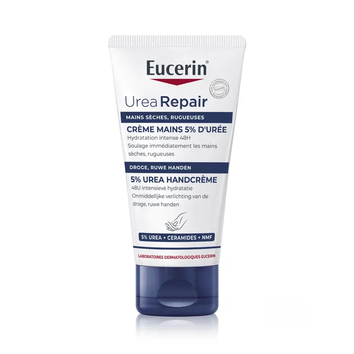 La Crème Mains 5 % d’Urée Urea Repair Plus Eucerin offre une texture riche et nourrissante qui réconforte les mains abîmées et soulage les gerçures et les craquelures. Rééquilibrées et protégées, les mains sont instantanément plus lisses et plus confortables.