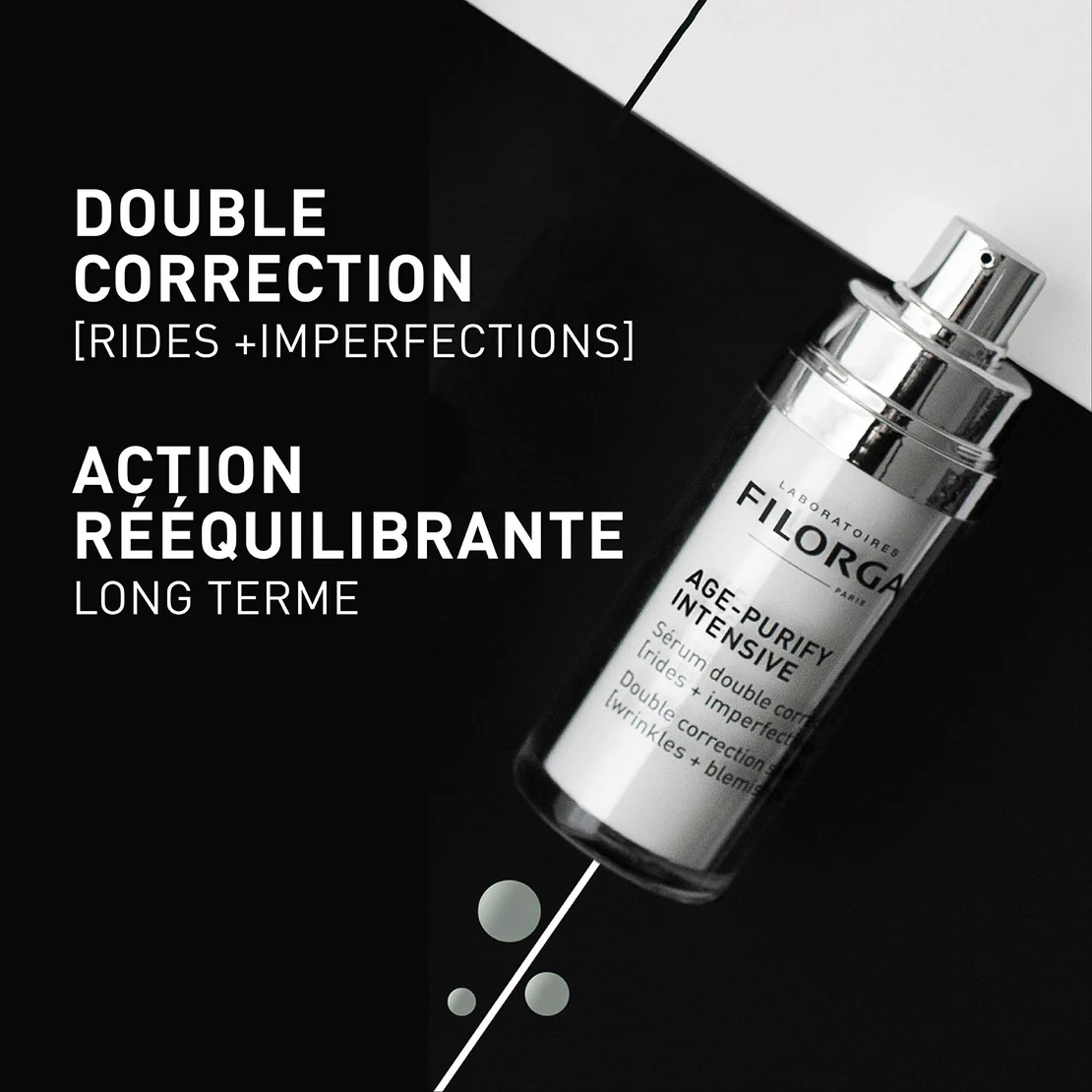AGE-PURIFY INTENSIVE, le sérum double correction anti-âge et anti-imperfections pour une peau lissée et purifiée qui répond aux problèmes de peau liés au vieillissement cutané. Idéal pour les peaux mixtes à grasses, sujettes aux imperfections.