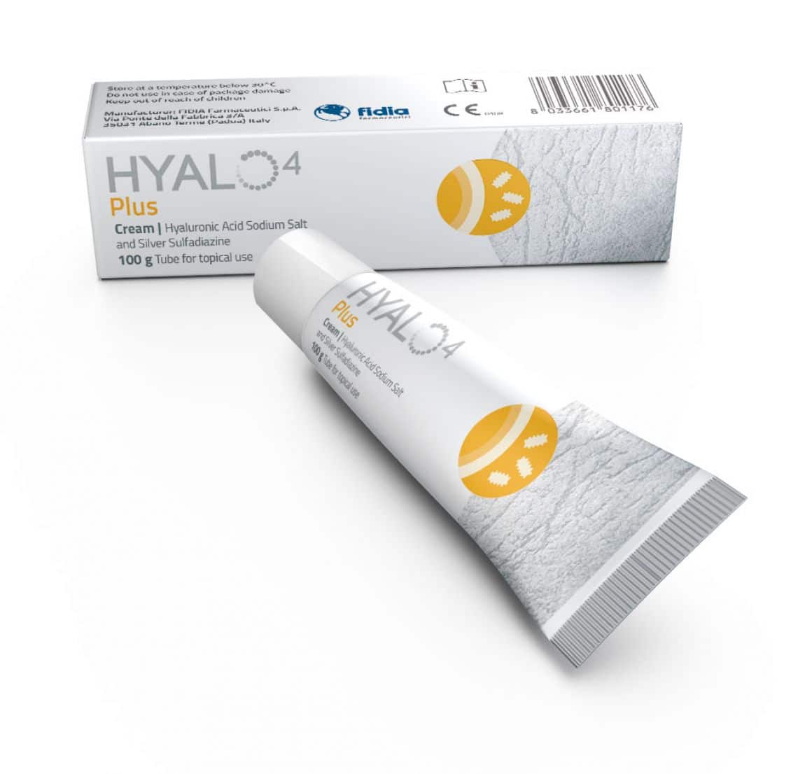 HYALO4 Plus Crème est une préparation topique dont les composants principaux sont le sel sodique d’acide hyaluronique et la sufadiazine d’argent.