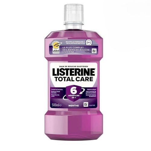 LISTERINE Total Care est un bain de bouche à usage quotidien dont l'efficacité a été cliniquement prouvée. Utilisez LISTERINE après le brossage des dents et aidez à éliminer jusqu'à 99 % des bactéries qui se trouvent dans les endroits que la brosse à dents ne peut atteindre. Résultat : 70 % de plaque en moins et 36 % de maladies des gencives en moins par rapport au brossage des dents seul. Autre point important : LISTERINE ne perturbe pas la flore buccale.