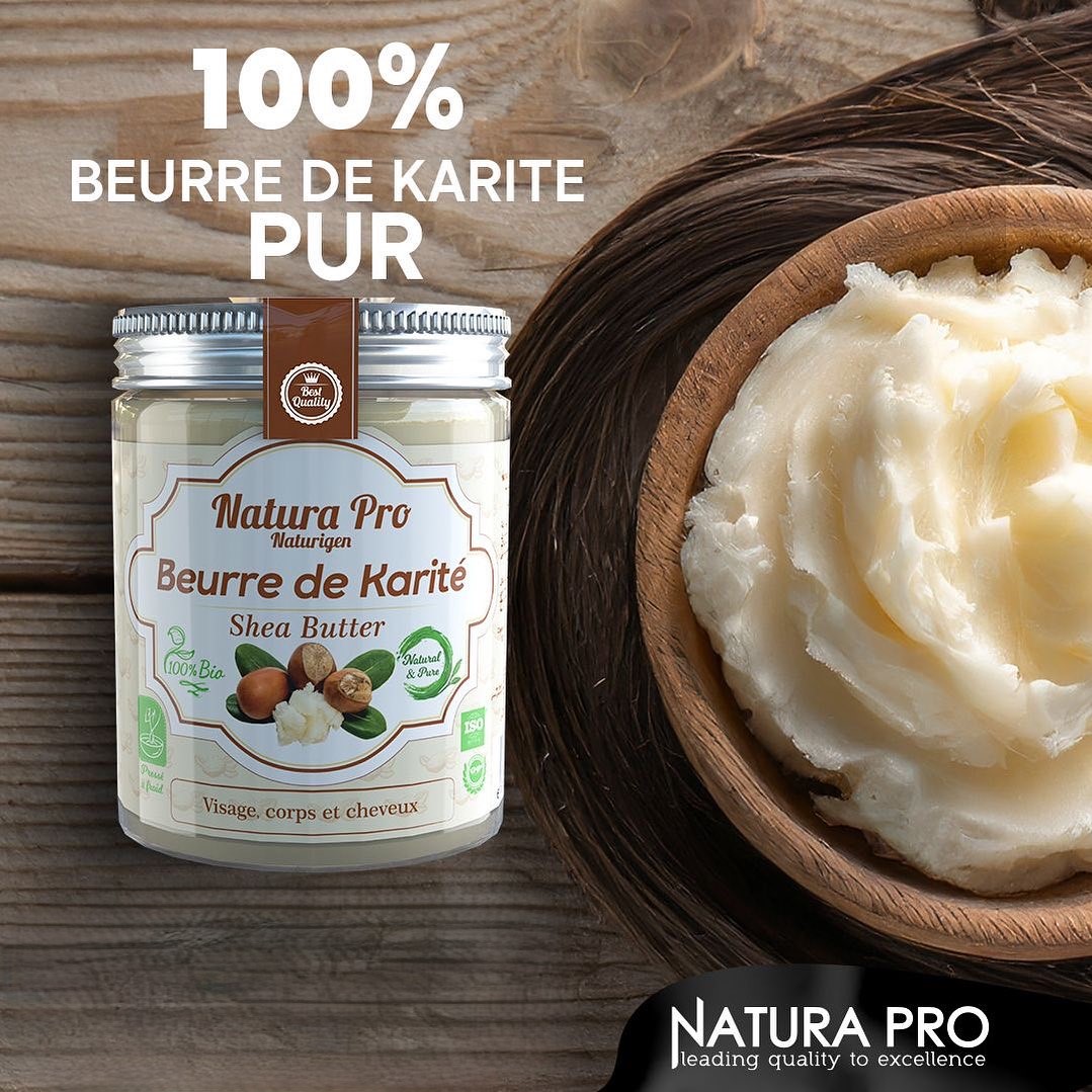 Le beurre de karité de Natura Pro est conseillé pour les peaux sèches, les cheveux cassants, les lèvres gercées, les irritations du nez, et contre le froid. Il offre une richesse unique en actifs naturels. Le beurre de karité, ou beurre végétal, est une substance extraite des fruits du karité, un arbre poussant dans les savanes arborées de l'Afrique de l'Ouest. Le beurre de karité est utilisé comme substitut au beurre de cacao. Une sélection rigoureuse des noix de karité et une production artisanale garantit un beurre de haute qualité.