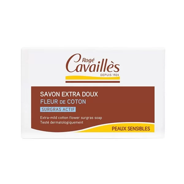 Le Savon Surgras est un produit phare de la marque Rogé Cavaillès. Ce Savon Extra-Doux Surgras à la Fleur de coton est spécialement formulé pour nettoyer les peaux sensibles de toute votre famille.
