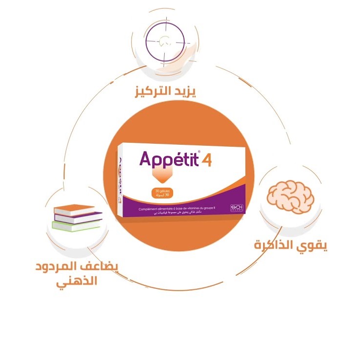 Appétit 4 contribue au métabolisme énergétique normal, stimule l’appétit, aide à la prise de poids naturelle et à la concentration.