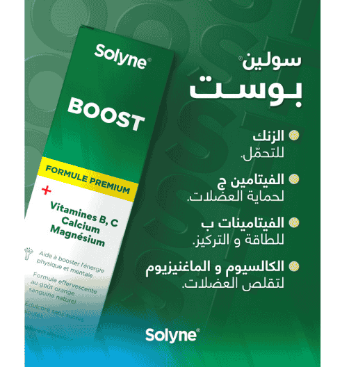 Solyne Boost est une formule nouvelle , riche et unique , destinée à apporter les vitamines (complexe B et vitamine C) et minéraux (Magnésium, Zinc , calcium) qui agissent en synergie pour apporter à l’organisme l’énergie nécessaire au quotidien pour maintenir une forme physique et des fonctions intellectuelles au top.