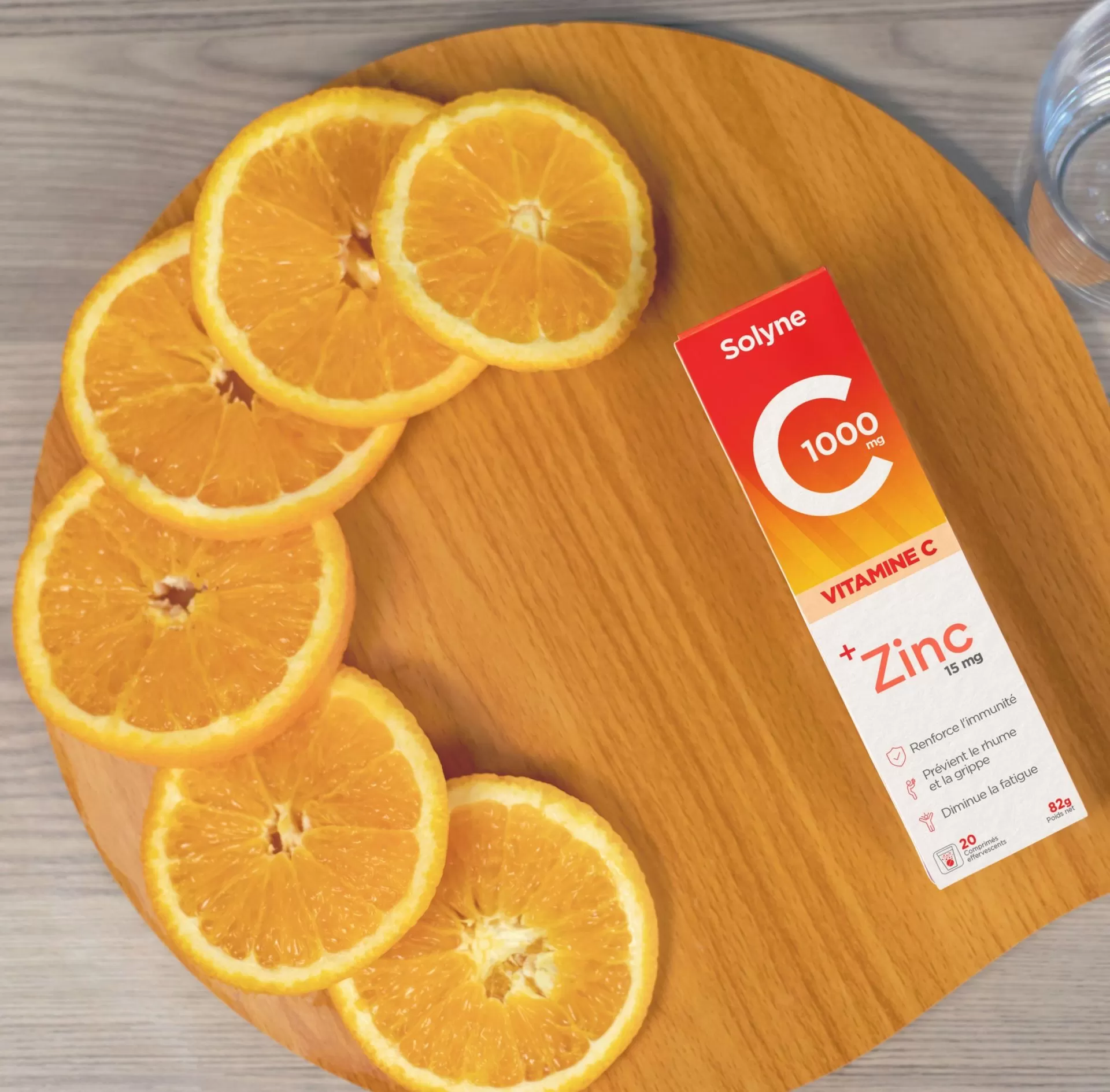 Solyne vitamine C associé au zinc contribue à réduire la fatigue et permet de retrouver tonus et énergie.