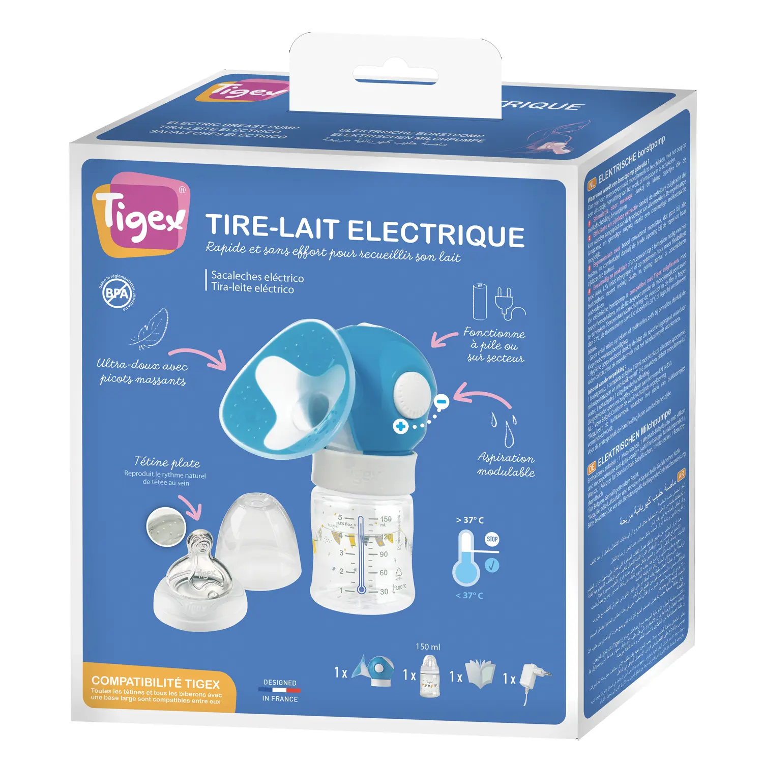 4 modes de stimulation et 4 réglages d'expression du lait, pour une séance confortable et personnalisée. Le design compact et léger du tire-lait vous permet de l'utiliser facilement en déplacement.