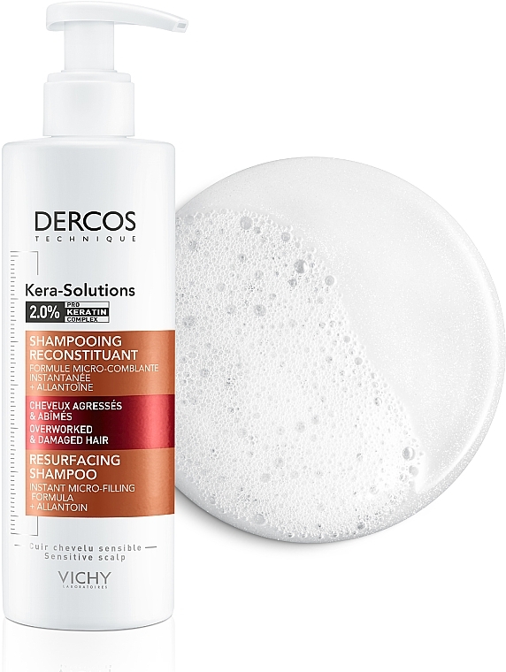 Le shampooing reconstituant DERCOS Kera-Solutions de VICHY est spécialement formulé pour les cheveux secs et abîmés. Enrichi en kératine végétale et en acide hyaluronique, il aide à réparer et à revitaliser les cheveux en profondeur, tout en les nourrissant intensément. Sa formule douce nettoie en douceur et laisse les cheveux plus forts, plus doux et plus éclatants de santé.