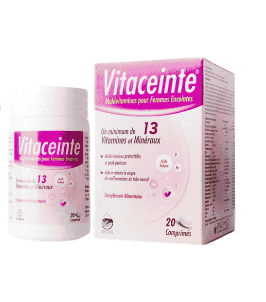Vitaceinte est un complément alimentaire multivitamines destiné à la femme enceinte, composé de 13 vitamines et minéraux.
